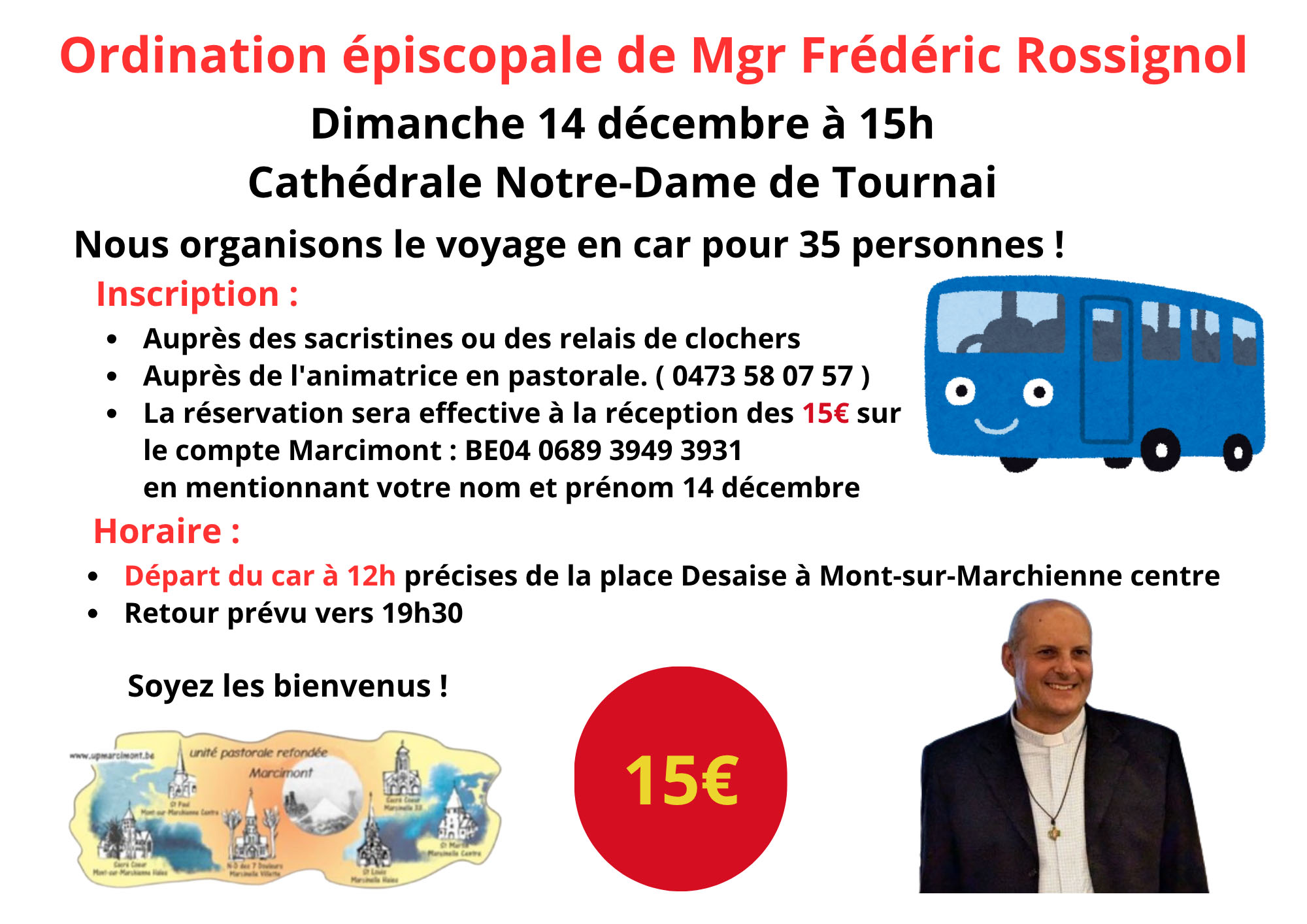 | 14 décembre Ordination à Tournai du nouvel Évêque Frédéric Rossignol Un car sera affrété pour s’y rendre en Unité Pastorale ! Cliquez pour les renseignement | Traditionnelle Marche au Flambeaux le lundi 1er décembre 2025 à 17h30, au départ de l’église Saint-Louis (Cours Garibaldi, 6001 Marcinelle). Cliquez pour le programme |