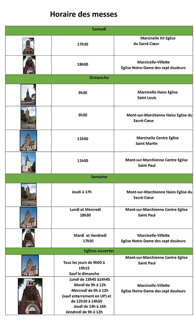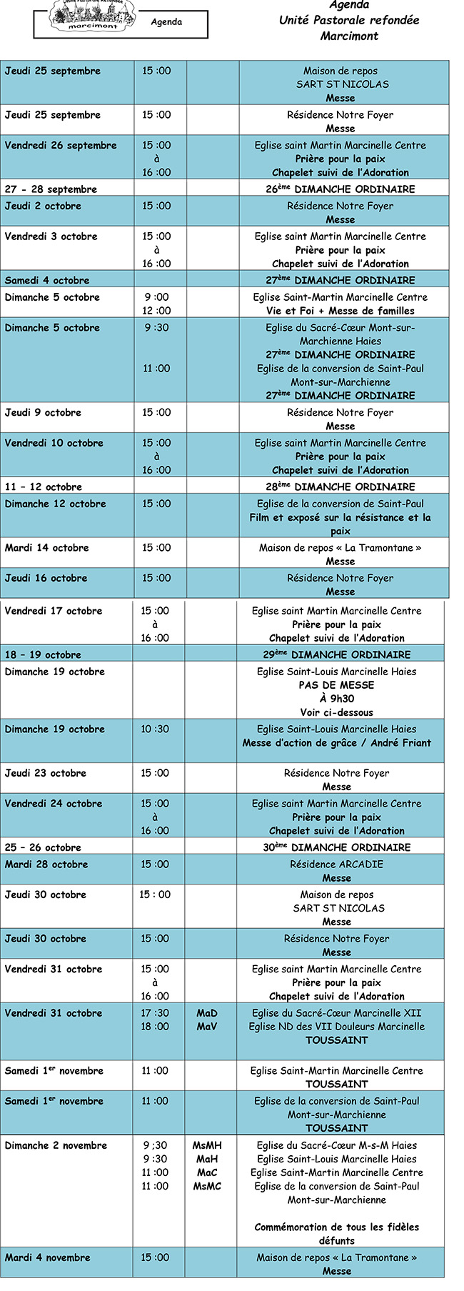 Horaire des messes et agenda de l’Unité Pastorale